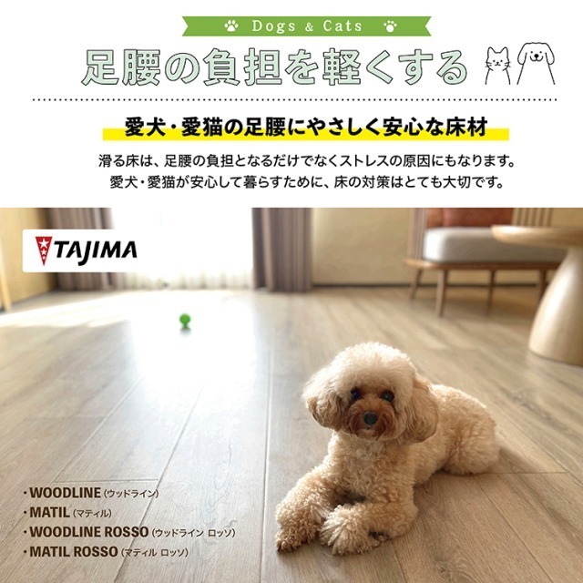 凹凸のある床材は、滑り止めとなるのでワンちゃんの足腰に負担をかけにくくなります。