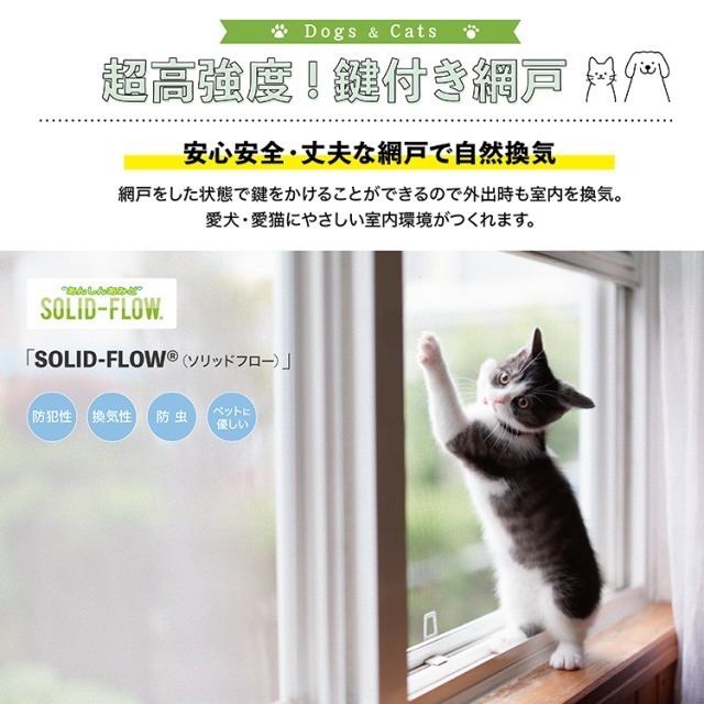 ワンちゃんの激突や猫ちゃんのぶら下がりにも網戸が破れることもなく