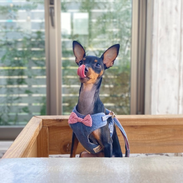 現在はピンシャーのメルちゃんと家族で暮らしています。